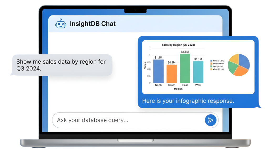 Insight DB enables enterprises to ask questions directly to their databases using AI and instantly receive accurate insights, reports, and data-driven answers without manual queries or dashboards.